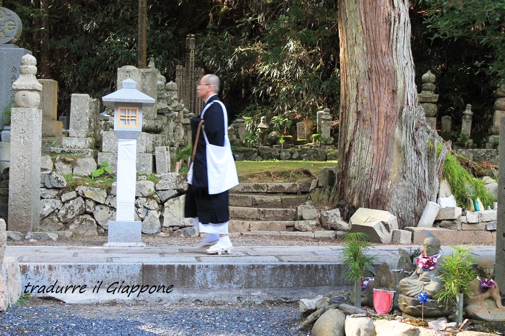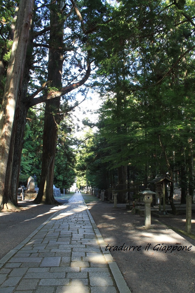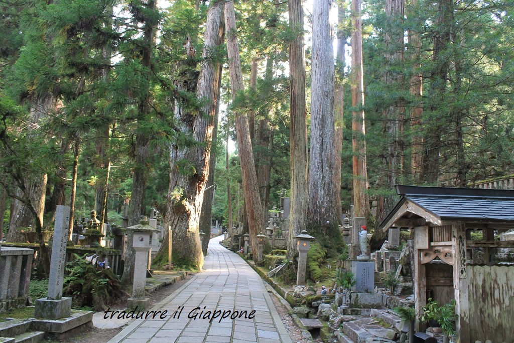 Ci rimane di andare a vedere il luogo più sacro del monte, e celebre meta di pellegrinaggio, l’Okunoin, sito in cui sorge il mausoleo di Kōbō Daishi e il più importante ed esteso cimitero buddhista del Giappone. Pensiero comune è che Kōbō Daishi, invece di essere morto, sia da dodici secoli in eterna meditazione in questa terra in attesa della venuta di Miroku Nyorai, cioè il Budda del Futuro, donando nel frattempo sollievo e salvezza a coloro che lo pregano.