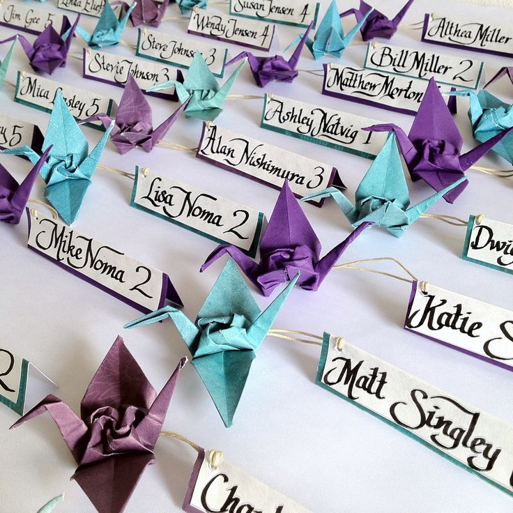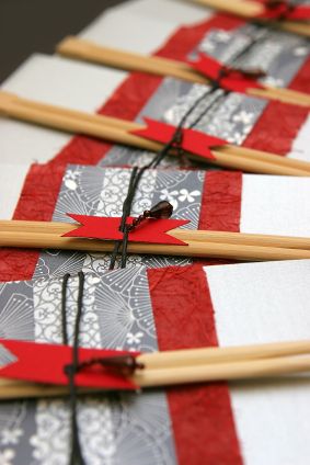 Io non ho fatto ovviamente segnaposti, ma se decidete di optare per il classico tableau, potete riciclare l’idea delle gru di origami. Un’altra idea molto carina è usare come segnaposto gli hashi, o se è estate, un’ottima idea può essere un bel ventaglio giapponese.