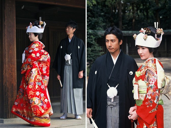 Ammetto che per me l’abito non è mai stato la priorità, non mi sono mai sognata in abito bianco, e anche durante la prove facevo fatica a rispecchiarmi in un’immagine di me così “principesca”. Alla fine ho optato per la semplicità estrema e linee morbide e dritte, non ho inserito vezzi e particolarità, ma un’idea che trovo fantastica è arricchire un abito semplice con accessori giapponesi. Basta guardare questi abiti a cui è stato applicato l‘obi. Ovviamente se ve la sentite, potete indossare un kimono da cerimonia, trovo quelli colorati a dir poco fantastici (per spose -e sposi- che non hanno paura di osare).
