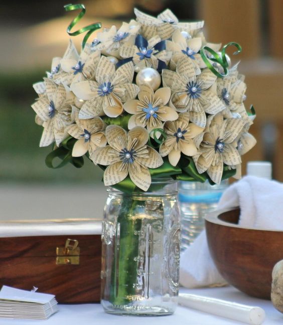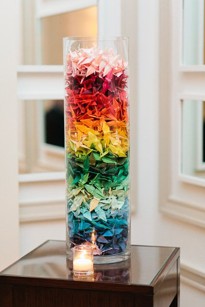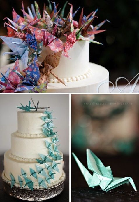 Non sono un’amante delle decorazioni floreali, e per il mio matrimonio ne avevo previste davvero poche (solo centrotavola e bouquet), una validissima alternativa molto economica è quella di realizzare le decorazioni sfruttando nuovamente gli origami. Fiori Kusudama (che si possono usare come bouquet alternativo a quello fatto di fiori), gru da appendere ad alberi o pareti, sprigionate la vostra fantasia e usate il magico potere della carta 🙂