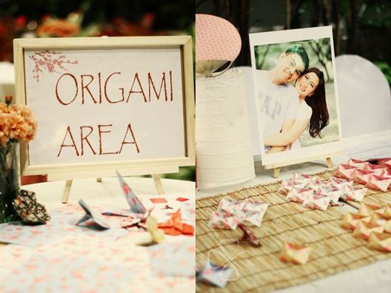 Fuori lista, ci sono tantissime altre idee che potete sfruttare per i dettagli del matrimonio. I coni portaristo fatti a origami, per l’intrattenimento dei bambini, ad esempio, potreste predisporre un’area origami con qualcuno che li intrattenga realizzando origami facili (come il kabuto, che poi potranno indossare). Per le decorazioni floreali, se sposate in primavera potreste sicuramente sfruttare i fiori di ciliegio sia per i centrotavola che per il bouquet, o anche il cake topper per la torta nuziale potrebbe essere in stile giapponese o realizzato con gli origami.