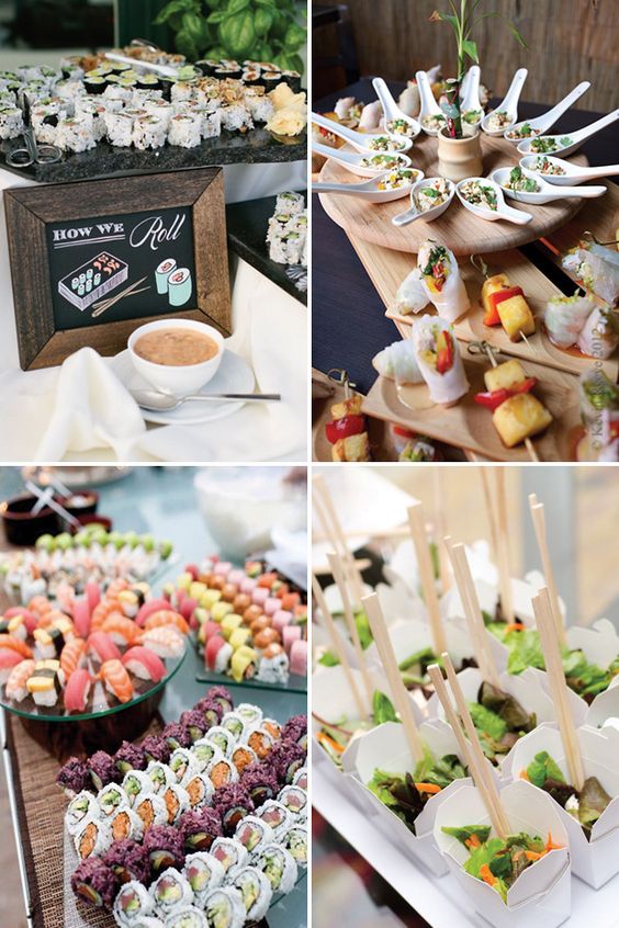 Ah, la scelta del menù, quante soddisfazioni e quante ansie porta con sé! Un’idea che dovete assolutamente considerare è quella di organizzare un fantastico angolo sushi (ormai proposto da tanti catering e ristoranti italiani, ma fate sempre attenzione alla qualità delle materie prime), che sarà sicuramente apprezzato dai vostri ospiti. In alternativa, o insieme, decidete voi, potete inserire un angolo dedicato alla degustazione di tè verde o ai wagashi.