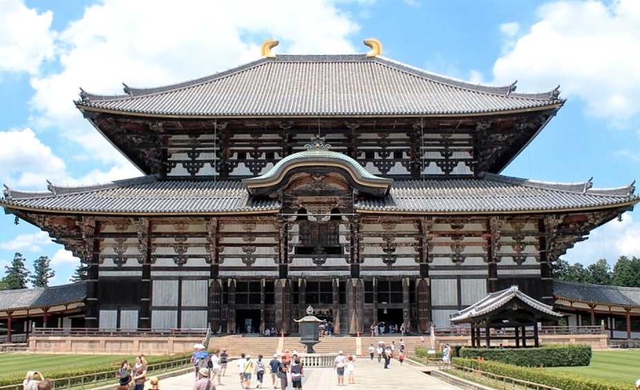 Si accede al tempio attraverso la Nandaimon, la porta Nandai. La sala principale del tempio, il Daibutsuden, che ospita la grande statua di Buddha, è la costruzione in legno più grande al mondo, ed è stupefacente considerando che l’edificio attuale, ricostruito nel 1692, è solo due terzi della struttura originale, che tra l’altro includeva due pagode ai lati, all’epoca seconde in altezza solo alle Piramidi d’Egitto, andate distrutte a causa di un terremoto.
