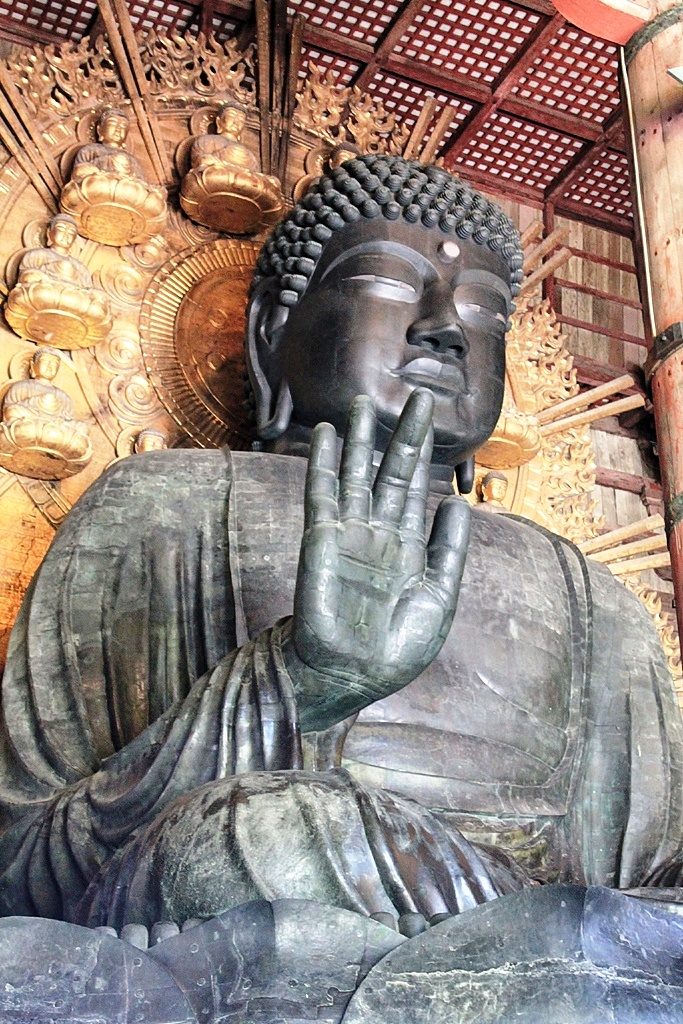 Il Daibutsu, cioè il grande Buddha di Nara, realizzato nell’VIII secolo, è una delle più grandi statue in bronzo del Giappone, raggiunge un altezza di quasi 15 metri e un peso di 500 tonnellate, un vero e proprio colosso!