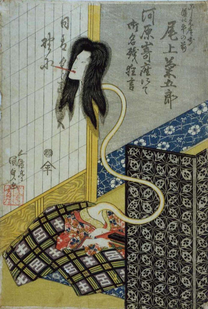 I rokurokubi 「轆轤首」sono yōkai che di giorno hanno normalissime fattezze umane; si tratta solitamente di donne che si trasformano al calar delle tenebre: il loro collo si allunga a dismisura, permettendo alla loro testa di spostarsi a notevole distanza dal corpo.