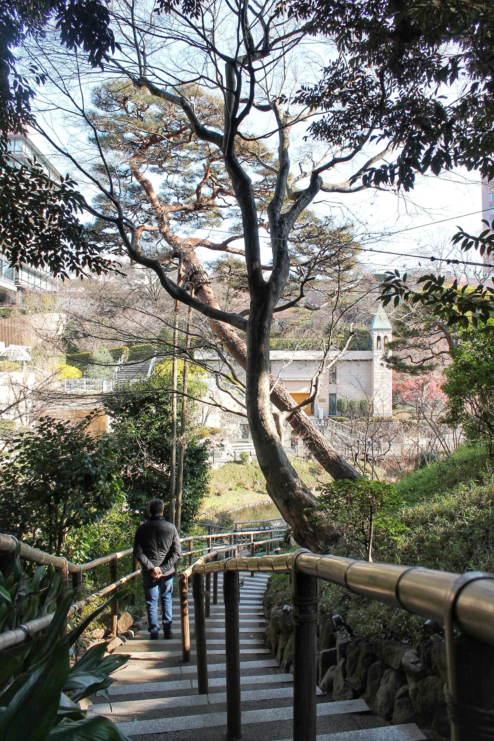Da qui abbiamo fatto una passeggiata lungo il fiume Kanda, una tranquilla zona residenziale, in cui si sentiva solamente lento il fluire dell’acqua. Superato il giardino tradizionale Higo Hosokawa, anche questo visitabile gratuitamente, abbiamo preso una stretta scalinata e ci siamo ritrovati a salire per lieve pendio che ci conduce verso l’antica residenza di Bashō (purtroppo chiusa), e proseguendo siamo arrivati all’ingresso secondario dell’hotel Chinzanso, per visitare il suo giardino.