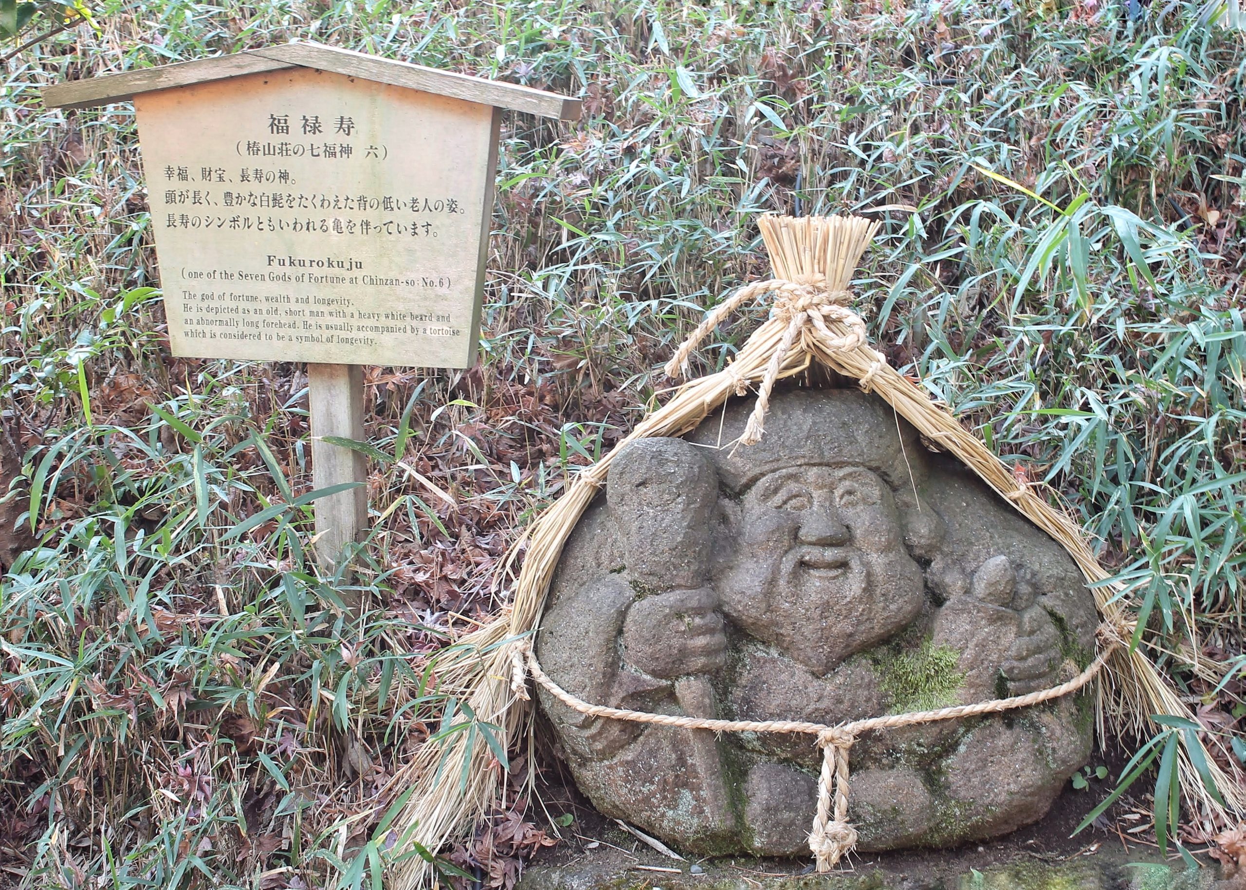 Il giardino sorge attorno allo stagno Yusuichi, ed è costellato da case da tè e vari punti di ristoro (che sono sorti nel dopoguerra), inoltre camminando nel giardino ci si può imbattere in alcune statuette nere rakan, che raffigurano i discepoli del Buddha storico, realizzate da Ito Jakuchu, pittore di epoca Edo, oltre che nelle statue delle Sette divinità della fortuna, che sono sparse per tutto il giardino (io sono riuscita a individuarne solo tre però!).